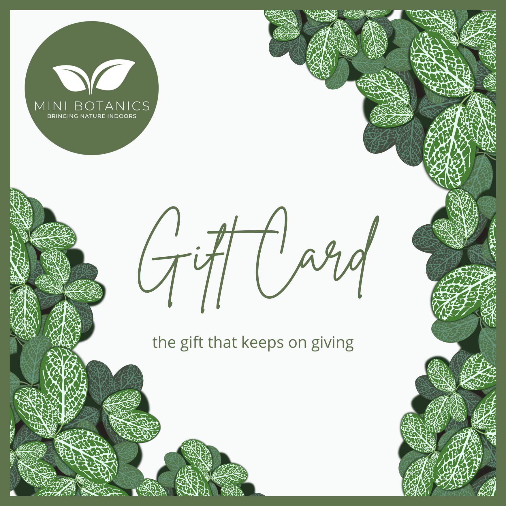 Gift CardsLooking for the perfect gift? Give a Mini Botanics Gift Card and let your loved ones explore our collection of mini botanical wonders.